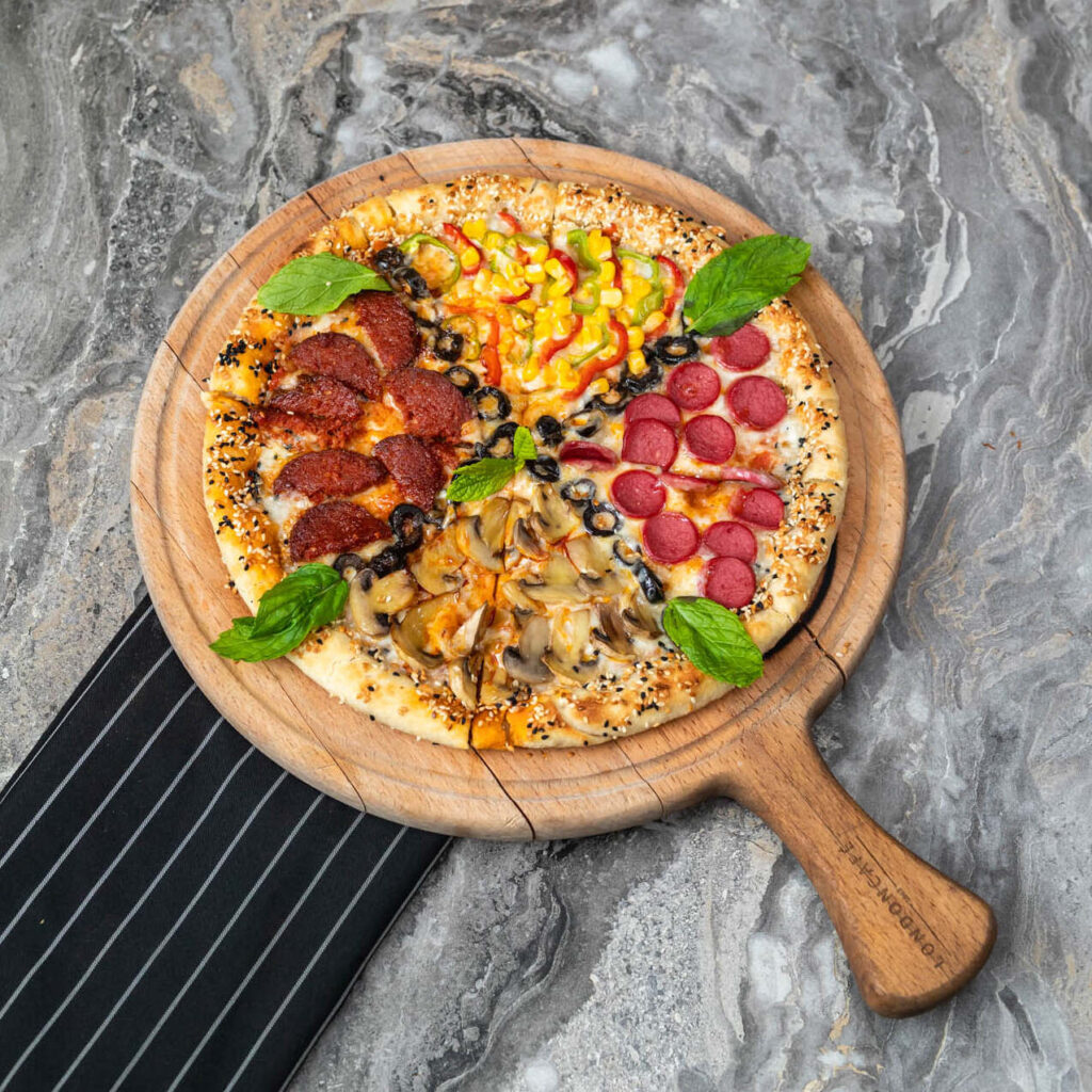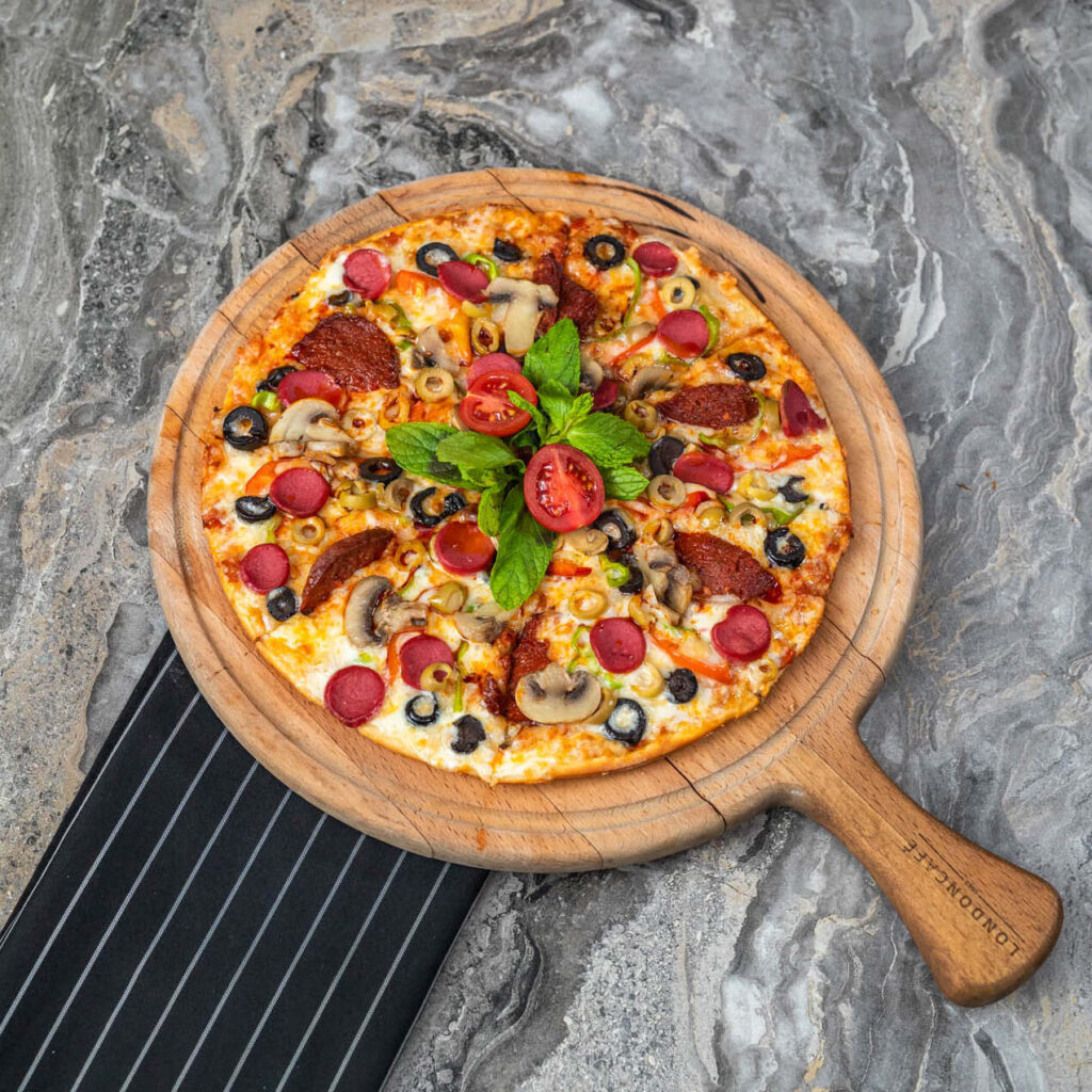 Perla Special Pizza İçindekiler:Kekikli Domates Sosu , Mozeralla Kavurma, Kasap Sucuğu, Renkli Biberler Ve Patates Kızartması Ile Fiyat:450 TL